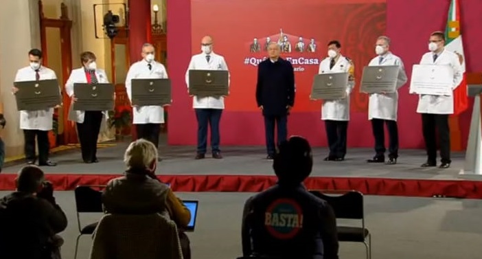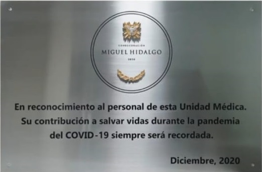 Zoé Robledo hizo entrega de la condecoración Miguel Hidalgo grado placa para reconocer a hospitales Covid y personal que atiende la pandemia. En total 980 reconocimientos.